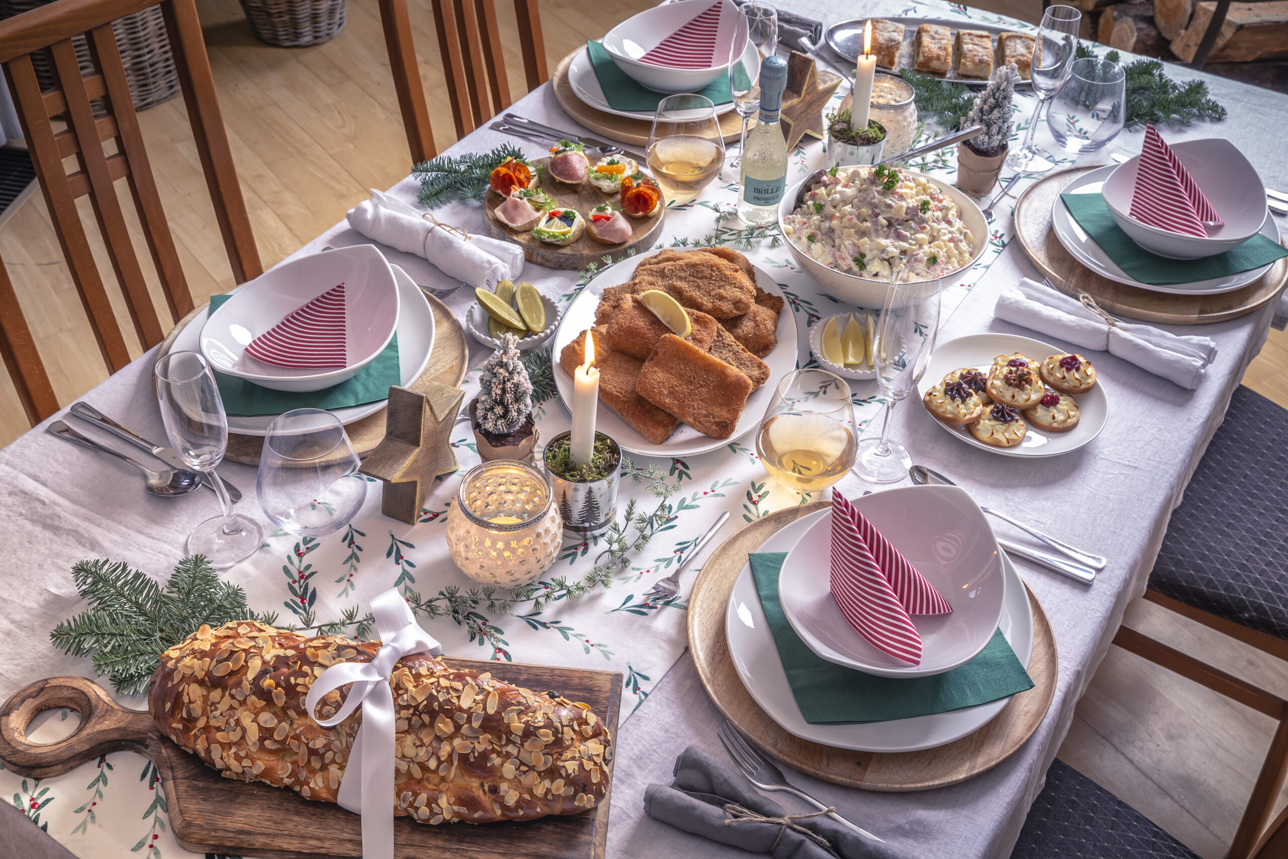 Bramborový salát, řízky, vánočka, chlebíčky — vše čerstvé a bez práce.